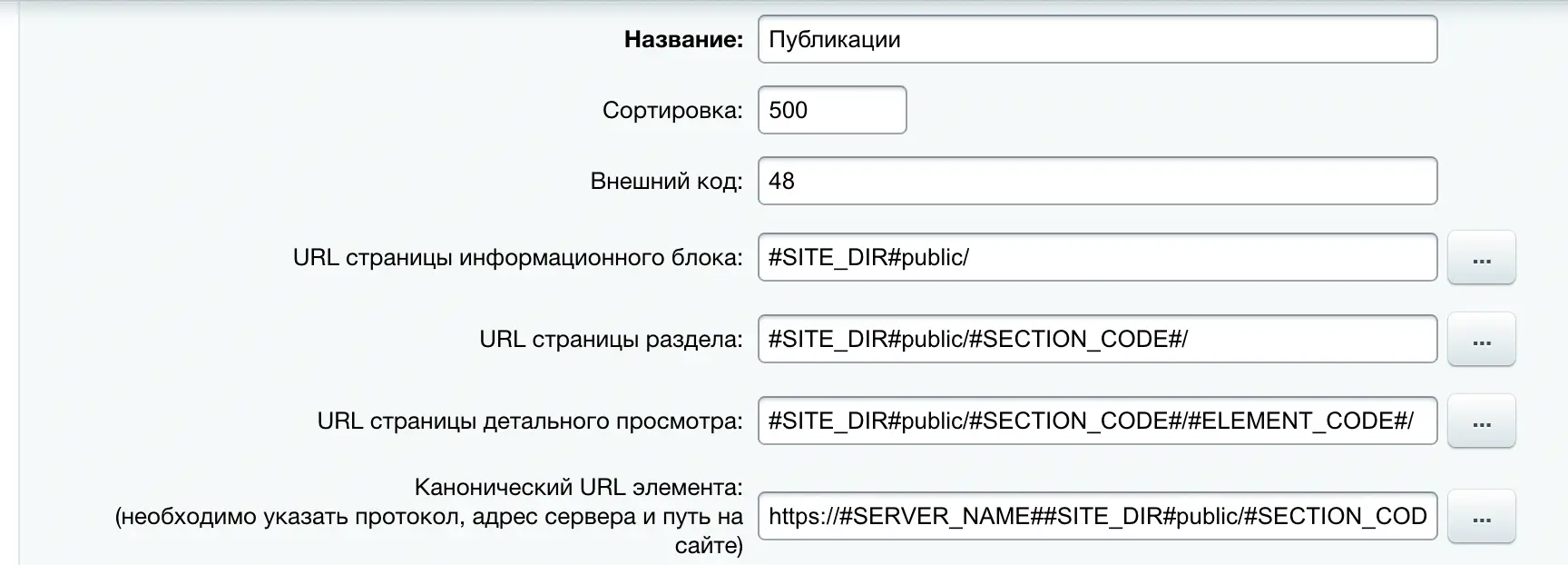 Особливу увагу потрібно приділити налаштуванням шаблонів ЧПУ . При вказівці шляхів рекомендується використовувати макрос #SITE_DIR# , а не жорстко прописаний слєш ( / ) або конкретний каталог.