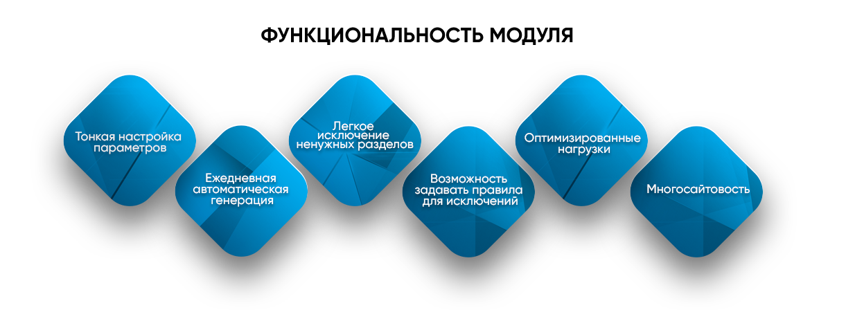 - Ежедневная автоматическая генерация файлов sitemap.
